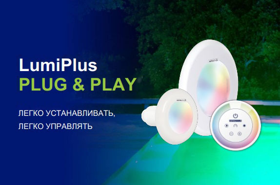 Рассказываем про новую линейку светильников для бассейна — Plug&Play PAR 56. Они крайне просты в эксплуатации, ярко светят и отлично подходят для обновления вашего бассейна, в котором установлены галогеновые светильники Standart 300W и любые другие форм-фактора PAR 56 — замена производится без переделок, и никакое дополнительное оснащение не нужно, кроме самих светильников и пульта.